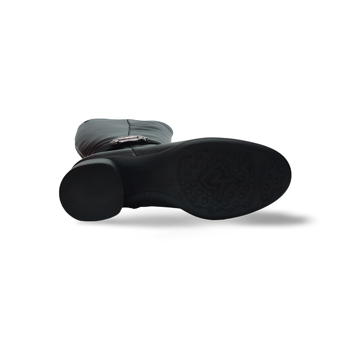 Siente la calidad en cada paso con estas botas altas. Confeccionadas con pieles de primera calidad y un diseño pensado para adaptarse a tu ritmo, este modelo es un básico imprescindible que combina sofisticación y bienestar. Elaborada en piel natural de color negro con un acabado suave y flexible que se adapta perfectamente a la forma de la pierna. Cuenta con una elegante tira de ante al tono adornada con una hebilla metálica rectangular, aportando un toque de distinción y estilo ecuestre moderno. Incorpora un tacón de altura media y base ancha que ofrece una estabilidad total, permitiéndote caminar cómoda durante horas sin renunciar a la altura. Equipada con la tecnología de amortiguación de Fluchos que reduce el impacto en las articulaciones al caminar. Incluye una cremallera lateral interna que facilita el calzado, manteniendo una silueta limpia y ajustada.