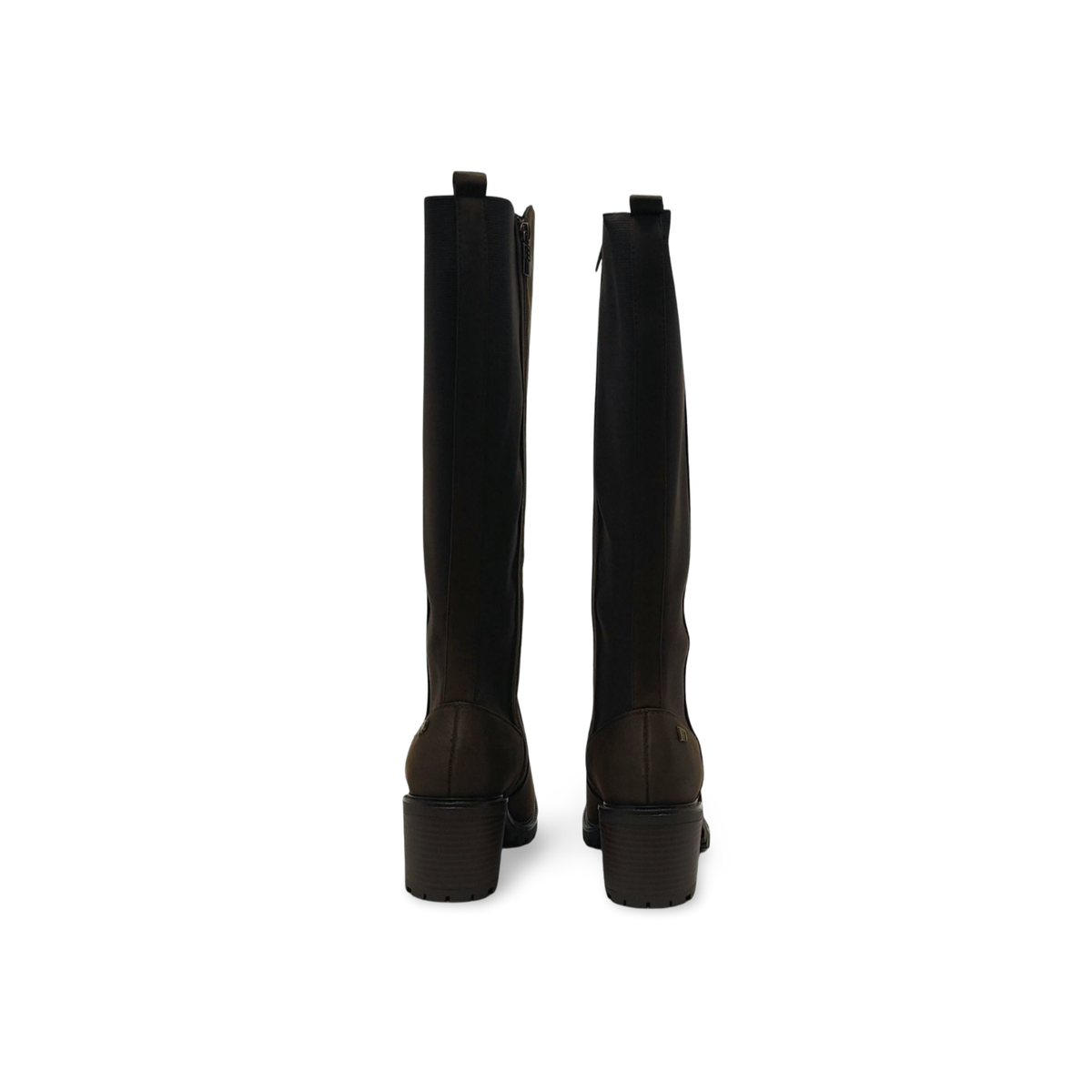 Estas botas en tono marrón de caña alta combinan un estilo clásico con las tendencias más actuales. Confeccionadas en un material suave con efecto aterciopelado o afelpado, su lateral elástico y la cremallera interior garantizan un ajuste cómodo y flexible a la pierna, como un calcetín. El tacón ancho y estable de altura media, junto con la moderna suela dentada, proporciona comodidad durante todo el día y un toque de carácter urbano. Versátiles y veganas, son ideales para estilizar cualquier look de invierno.