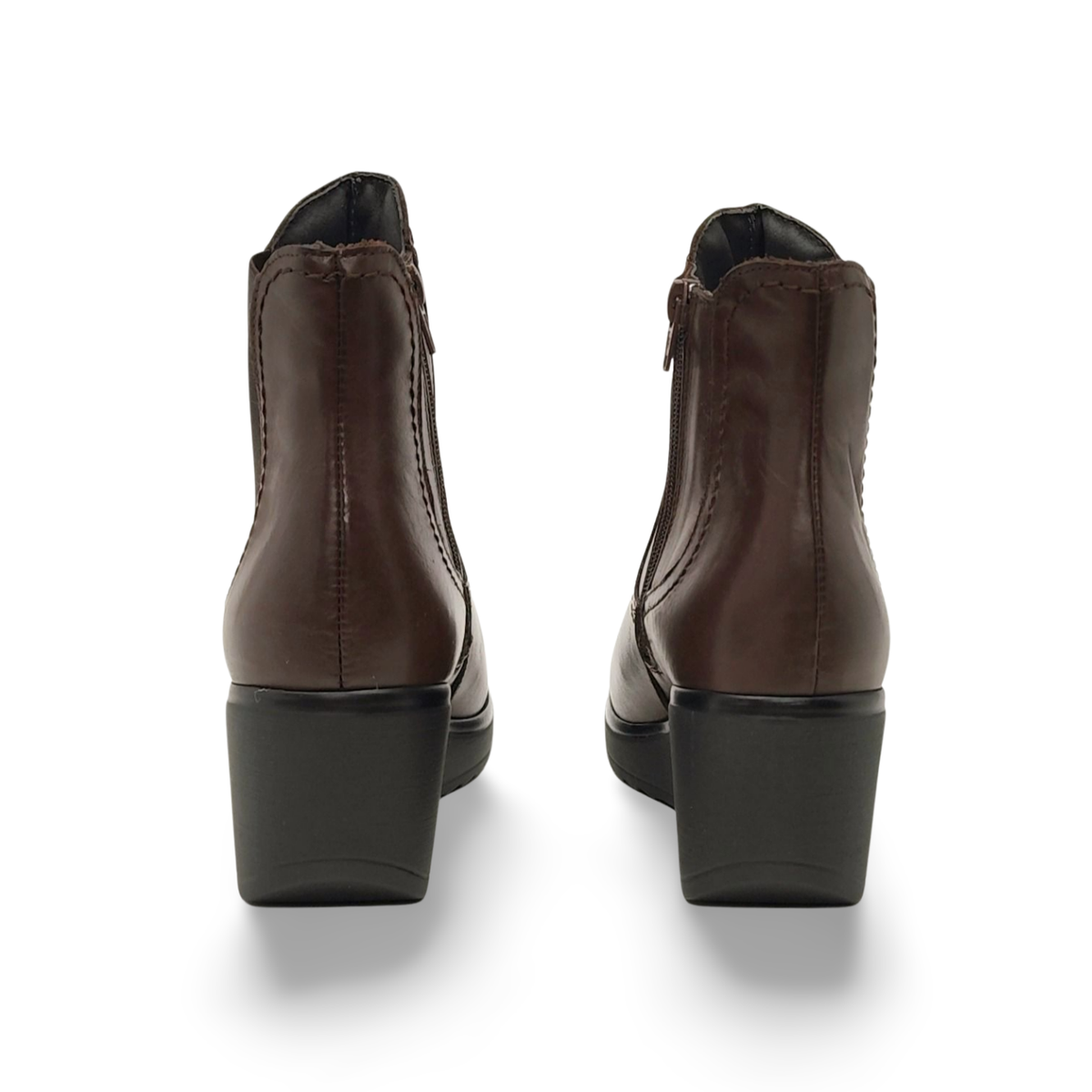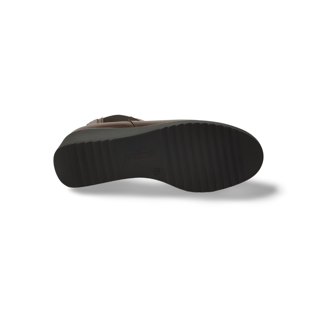 Descubre la combinación perfecta de confort y diseño con estos botines. De estilo Chelsea en piel marrón suave son la opción ideal para quienes buscan un calzado cómodo y versátil para cualquier ocasión. Cuentan con paneles laterales de elástico ancho que facilitan un calce cómodo, complementados con un cierre de cremallera lateral para mayor seguridad y practicidad. Disponen de una cuña alta estable y una suela de goma termoplástica flexible y resistente, diseñada para proporcionar un buen soporte y agarre en la pisada diaria. Incluyen una plantilla anatómica extraíble que se adapta a la forma del pie, ideal para personas con plantillas personalizadas o que buscan un confort adicional.