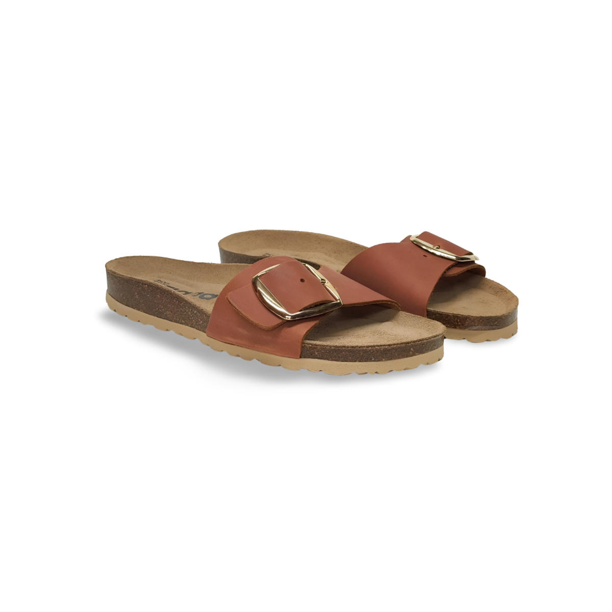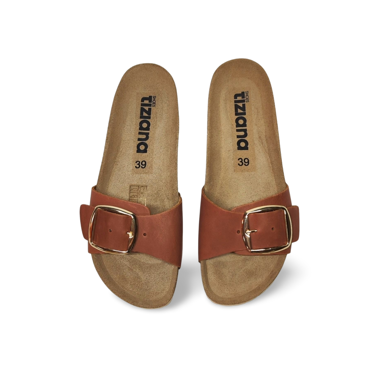 Este zueco te acompañará toda la temporada ya que su comodidad es excelente y combinarán con tus looks de diario. Con una tira en tono cuero y una hebilla en tono oro para poder ajustar al pie, plantilla bio.