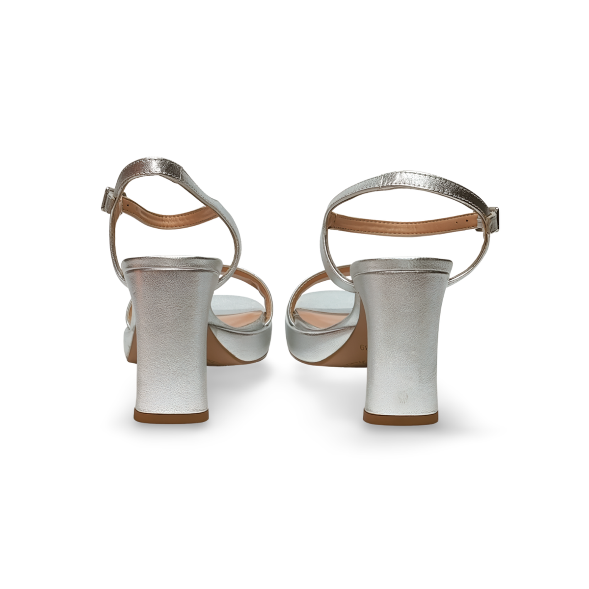 Estas sandalias serán tu mejor complemento, en tono plata con tira delantera y otra en el tobillo con hebilla. Tacón y plataforma forrados de piel en plata. Suela de goma antideslizante.