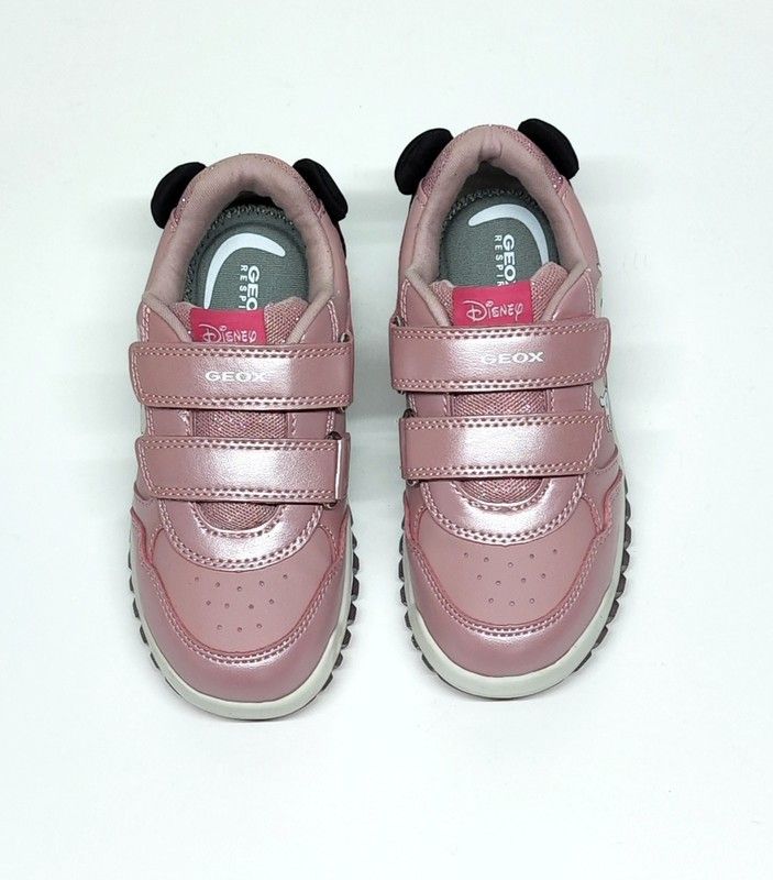 Sneaker de efecto piel en color rosa y rosa metalizado, con temática de Minie Mouse. Cuenta con cierre de dos tiras de velcro en la pala, para un mayor ajuste al pie. La plantilla es extraíble. La suela lleva luces incorporadas, que se encienden y se apagan, mediante el sistema de On/Off situado en la parte interna.