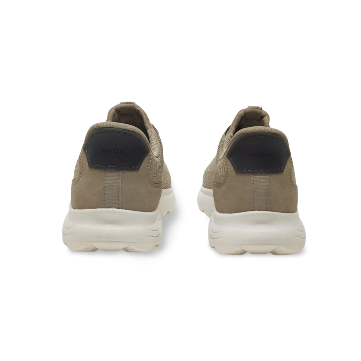 La Geox Spherica™ PLUS redefine el concepto de calzado urbano combinando un diseño dinámico con la tecnología más avanzada de Geox. Este modelo destaca por su sistema Fast-In, que permite un calce inmediato y práctico sin necesidad de utilizar las manos, gracias a una apertura elástica y un diseño ergonómico en el talón. Tecnología Zero Shock System, la suela incorpora esferas ultra suaves que absorben los impactos en cada paso, proporcionando una amortiguación superior y una sensación de ligereza inigualable. Cuenta con la icónica suela perforada de Geox con una membrana impermeable y transpirable, que permite la termorregulación natural del pie manteniéndolo seco. El empeine está fabricado con un tejido efecto punto de alta calidad, complementado con detalles en material efecto nobuk que aportan un toque de elegancia y resistencia. Su construcción está optimizada para acompañar el movimiento natural del pie, ideal para caminar por la ciudad durante horas sin fatiga.