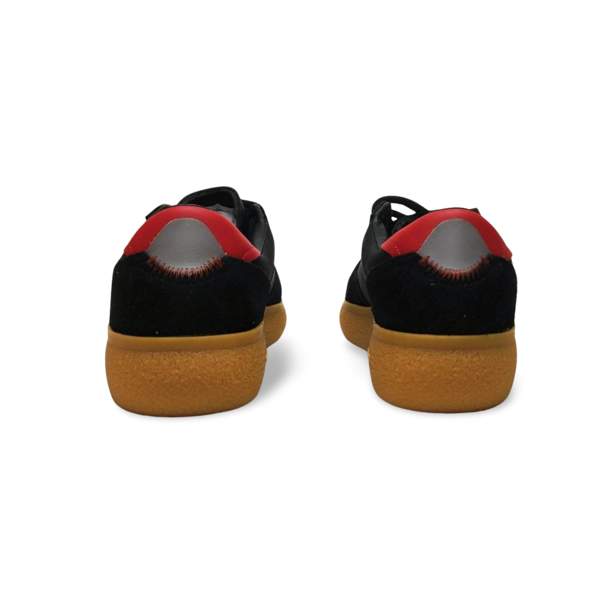 Esta zapatilla combina a la perfección estilo urbano, diseño contemporáneo y comodidad, convirtiéndose en una opción ideal para el uso diario. Presenta un atractivo diseño en color negro con detalles en contraste, incluyendo el icónico logo SUN68 en el lateral, que aporta personalidad y un look moderno. Su combinación de textil y material sintético ofrece ligereza, transpirabilidad y resistencia, adaptándose cómodamente al pie. El cierre con cordones garantiza un ajuste seguro, mientras que el acolchado en el talón y la lengüeta mejora la sensación de confort durante todo el día. Destaca su suela de goma en tono caramelo, que no solo aporta un estilo retro muy actual, sino también buena tracción y estabilidad en cada pisada. Esta zapatilla es perfecta para combinar con jeans, pantalones casuales o looks streetwear.