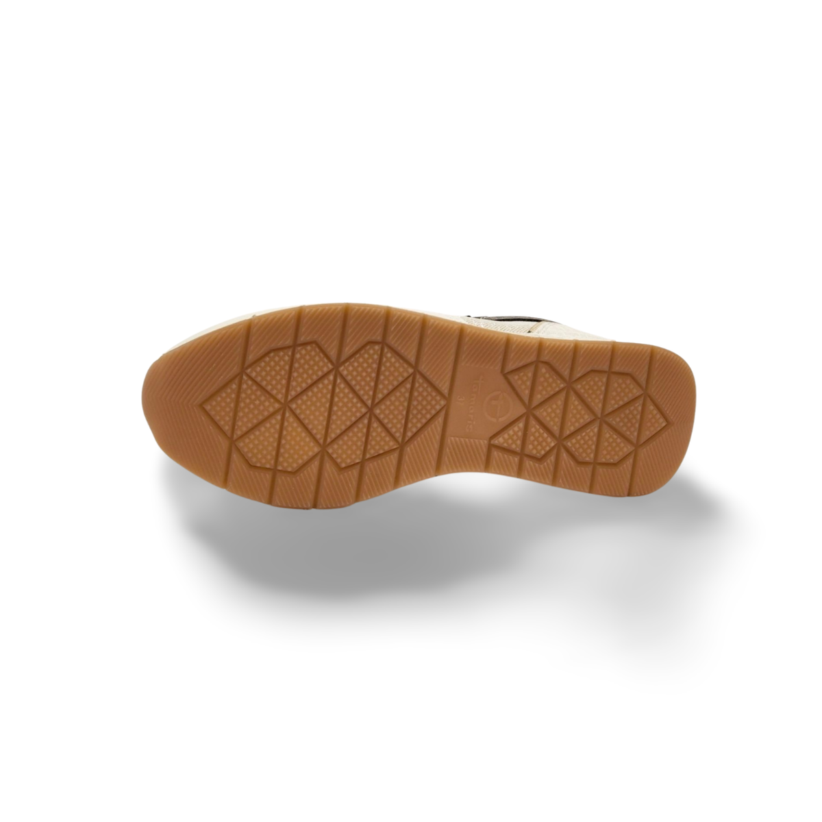 Las zapatillas Tamaris destacan por su estilo moderno, comodidad superior y diseño sofisticado, ideales para quienes buscan un calzado versátil para el uso diario. Su combinación de materiales premium y detalles metalizados aporta un toque elegante y actual a cualquier outfit. Este modelo cuenta con cordones frontales y cremallera lateral, facilitando el calce y garantizando un ajuste seguro. Está confeccionado en material sintético y textil transpirable, que mantiene el pie fresco y cómodo durante todo el día. La plantilla acolchada con tecnología de confort Tamaris proporciona una excelente amortiguación, reduciendo el impacto en cada pisada. Su suela ligera discreta y base antideslizante mejora la estabilidad y aporta un ligero aumento de altura sin sacrificar comodidad. El diseño en tonos neutros con detalles dorados y estampados sutiles convierte a estas sneakers en una opción perfecta para looks casuales, urbanos y semi-formales.