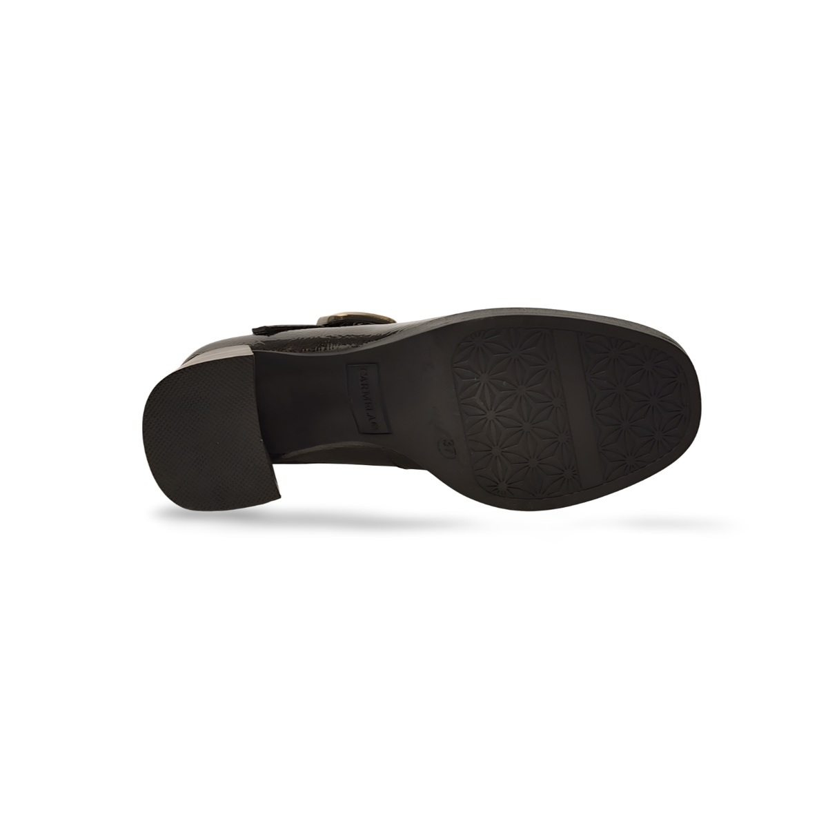 Capta todas las miradas con estas espectaculares Merceditas. Combina la dulzura de un diseño clásico con la fuerza de las tendencias actuales, creando un zapato imprescindible para tu armario. Su deslumbrante acabado en charol de alto brillo en tono gris no solo es visualmente impactante, sino que eleva cualquier look al instante. El tacón de bloque alto ofrece una silueta audaz y moderna, garantizando al mismo tiempo una estabilidad y comodidad superiores para caminar. La ligera plataforma en la parte delantera no solo añade un toque retro muy actual, sino que también reduce la altura percibida del tacón, aumentando significativamente el confort. La característica tira con hebilla metálica dorada sobre el empeine no solo asegura un ajuste perfecto, sino que añade un elegante contraste y un aire vintage. La puntera ligeramente cuadrada aporta un toque de diseño contemporáneo y ofrece mayor espacio y comodidad para los dedos. Su plantilla es extraíble.