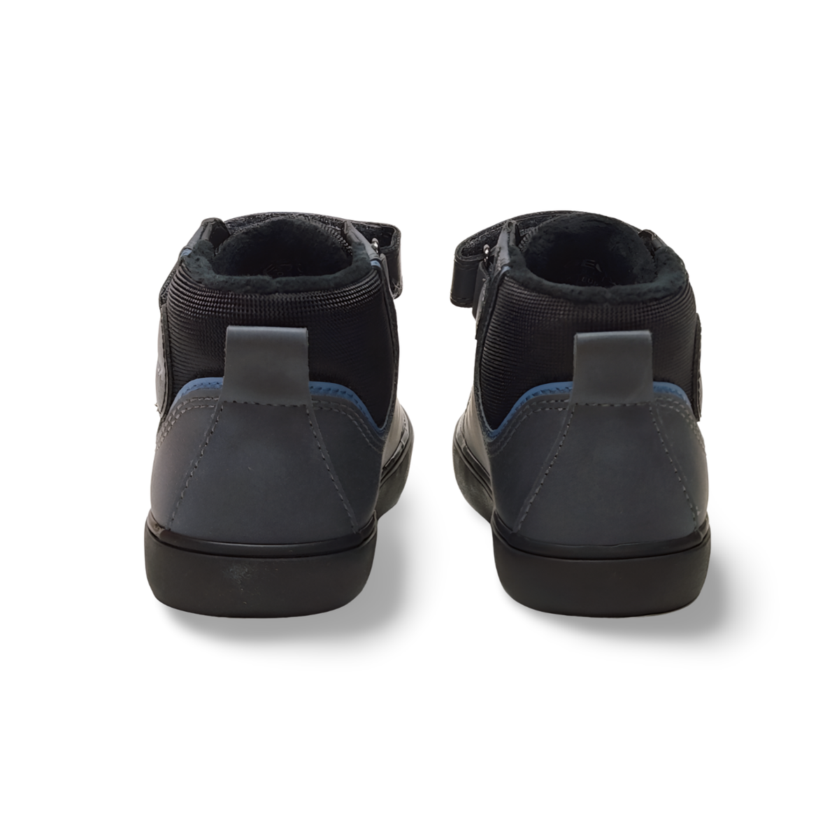 Botín diseñados para el día a día en época de frío ya que llevan un forro interior para mantener el calor. En tono azul con detalles en negro, tira de velcro y elásticos para mayor ajuste. Suela en tono negro y plantilla extraíble.