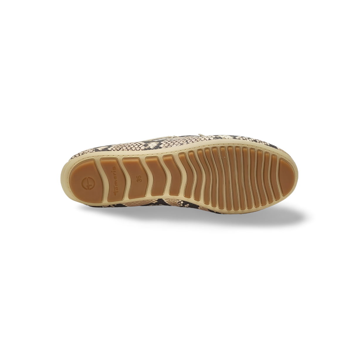 Los mocasines Tamaris 1-24630-44 con estampado de serpiente son un calzado femenino que combina un diseño clásico con un toque moderno y atrevido. Este modelo destaca por su versatilidad para looks casuales o de oficina. Se trata de un mocasín confeccionado con cuero natural de alta calidad, lo que garantiza durabilidad y una adaptación óptima al pie. El acabado exterior presenta un estampado animal print en tonos beige y marrón. La pala incluye una cinta clásica de mocasín con un adorno metálico central que añade un elemento de elegancia sobria. Este modelo está diseñado para ofrecer una gran comodidad gracias a su punta redondeada y una plantilla acolchada. Incorpora una suela de goma flexible y antideslizante con un patrón de tacos, proporcionando una tracción excelente.