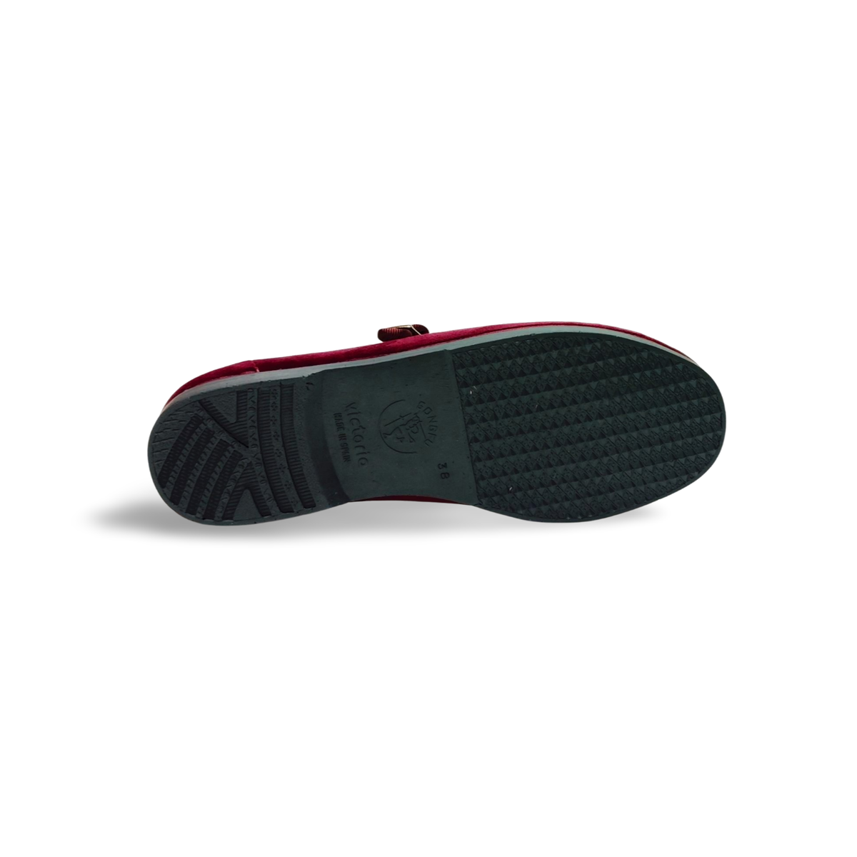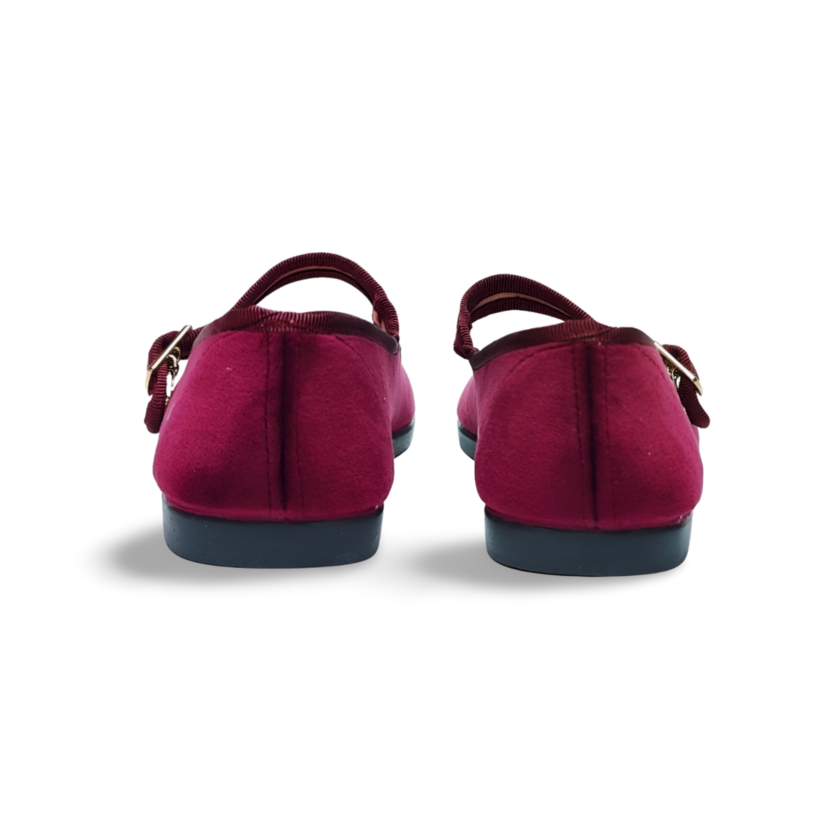 Mercedita de bellut, en color burdeos. Cuenta con cierre de una tira de hebilla, para un mayor ajuste al pie. Su suela es de caucho natural, para garantizar un buen agarre. Es un modelo muy ligero.